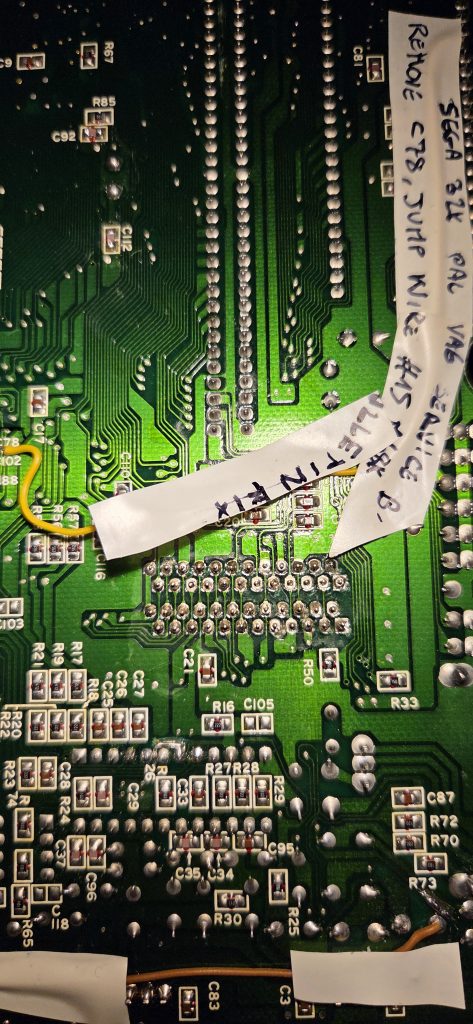 Today I’ve got some fresh work I’ve been dealing with. As part of troubleshooting a Sega Mega Drive 1 VA4 PAL unit which is faulty – for which I’ll be posting something about sooner or later – I’ve been unsoldering the Video RAM from (my) PAL VA6 working unit to swap and test the VA4. When I unsolder ICs, I typically socket everything up by then, as unsoldering is a stressful process for the PCB, and I don’t want to end up with a “oh oh” situation where the part was not the culprit, or worse, only to discover I’ve soldered the bad one with another BAD one due – this is > 30years NOS anyway, you never know what you get.